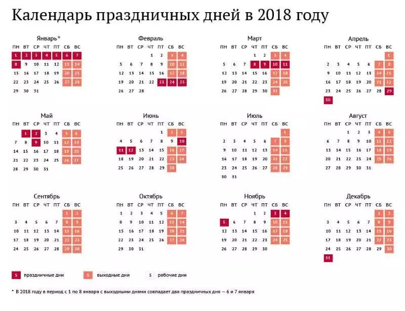 2018年,俄政府为多个节日安排了调休,部分调休时间间隔长达半年,为了凑假也是蛮拼了。例如:适逢节假日的1月6日和7日(周六、日)两个休息日分别被调整至3月9日和5月2日。今年,俄罗斯民众还有4个法定节日,分别是:“劳动节”(4月29日至5月2日,休息4天),“胜利日”(5月9日,休息1天),“俄罗斯日”(6月10日至12日,休息3天),“民族团结日”(11月3日至5日,休息3天)。